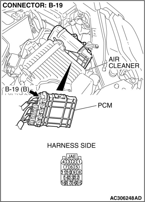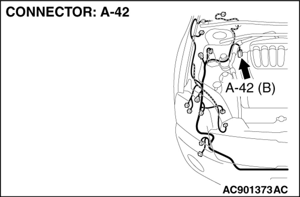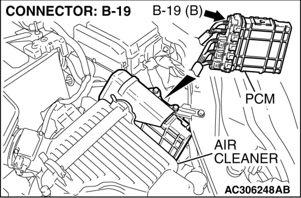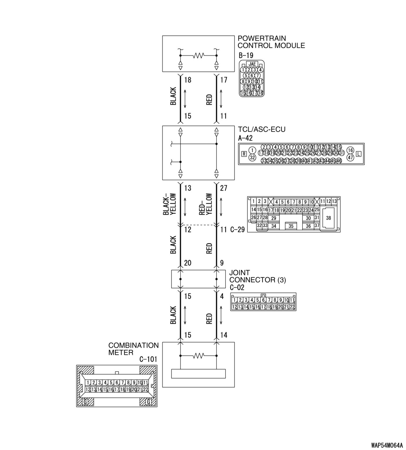 STEP 1. Check TCL/ASC-ECU connector A-42 and powertrain control module connector B-19 for loose, corroded or damaged terminals, or terminals pushed back in the connector.