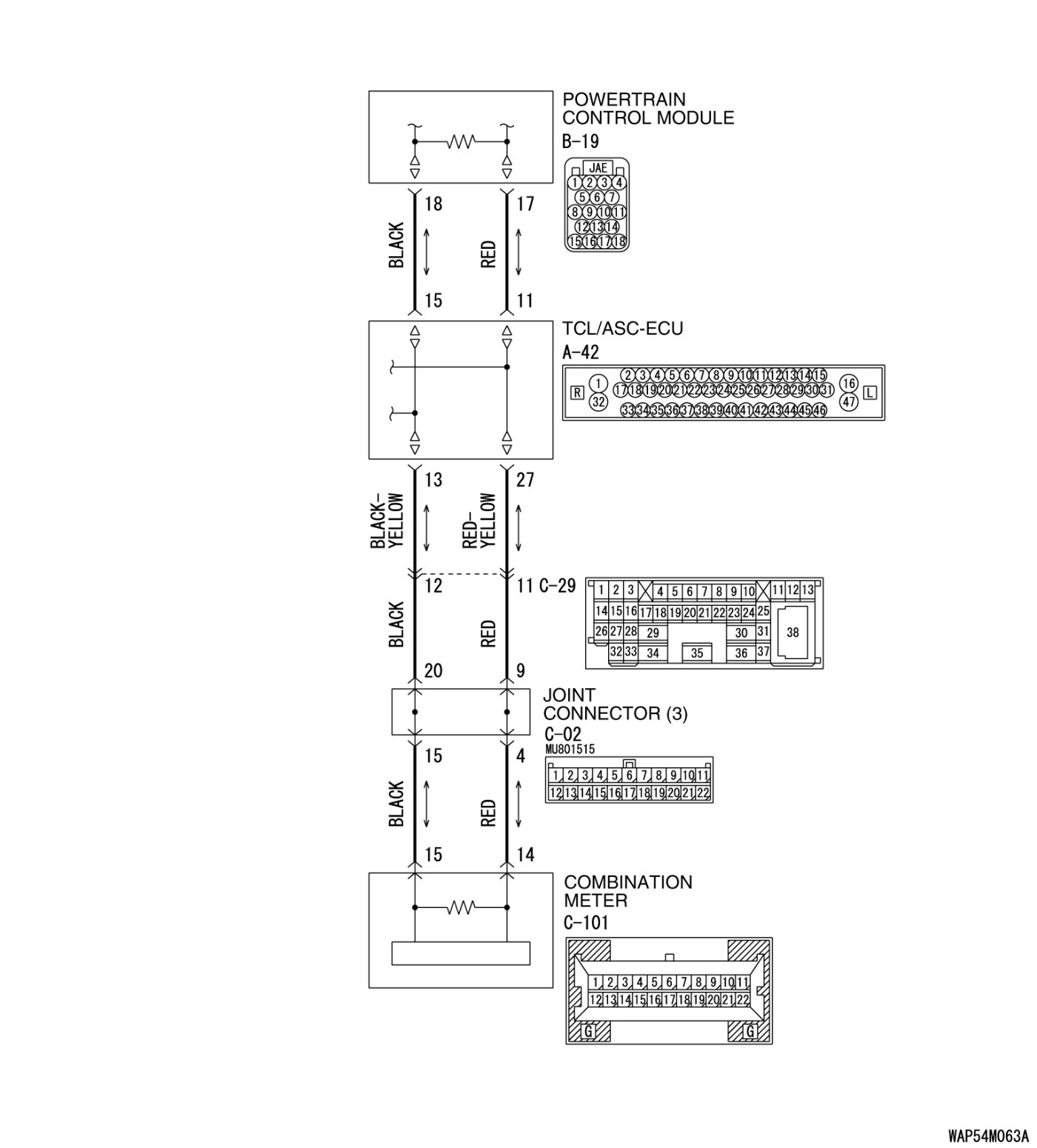 Q. Are joint connector (3) C-02 and combination meter connector C-101 in good condition?