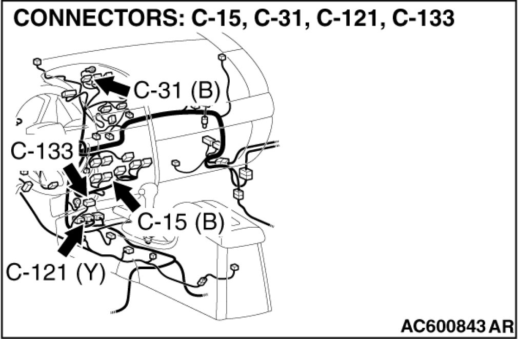 STEP 13. Check A/C-ECU connector C-15 for loose, corroded or damaged terminals, or terminals pushed back in the connector.