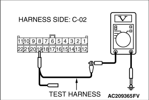 (2)Connect special tool MB991997 (ASC check harness) to the TCL/ASC-ECU and the wiring harness, and measure the voltage at special tool MB991997 (ASC check harness).