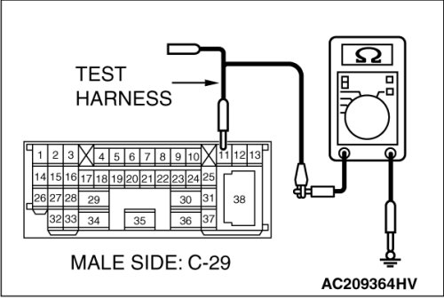 (1)Disconnect intermediate connector C-29 and TCL/ASC-ECU connector A-42, and measure the resistance at the male side of intermediate connector C-29 (at front wiring harness side).
