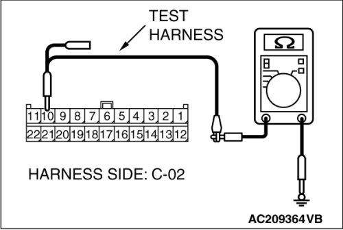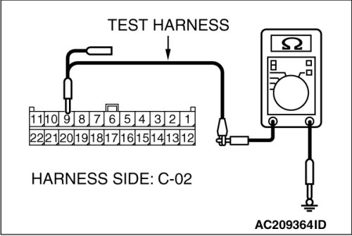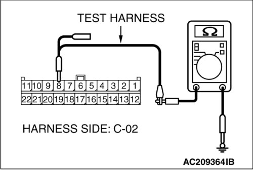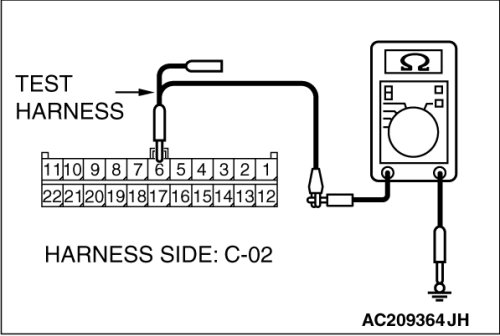 STEP 24. Check the CAN_H line [communication line including the multi-center display unit (Mitsubishi Multi Communication System)] between joint connector (3) and multi-center display connector for short to ground. Measure the resistance at joint connector (3) C-02.