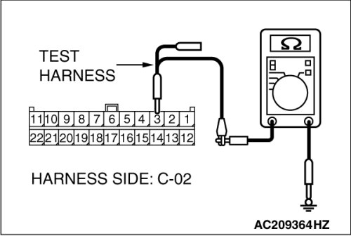 NO If the resistance measures less than 1 kohms, repair the wiring harness between joint connector (3) and multi-center display unit connector (Mitsubishi Multi Communication System).