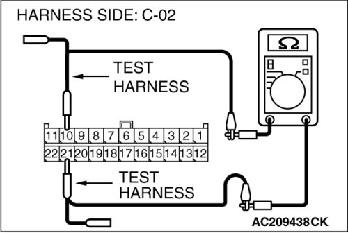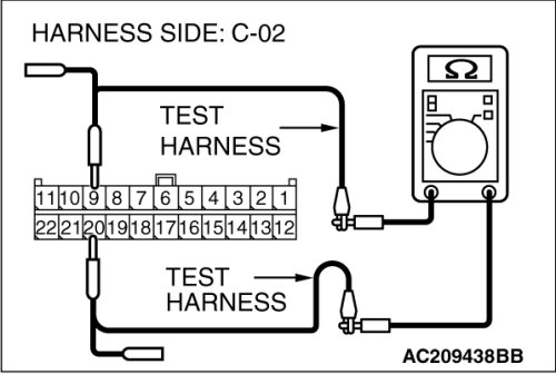 (1)Disconnect joint connector (3) C-02 and steering wheel sensor connector C-314, and measure the resistance at the wiring harness side of joint connector (3) C-02.