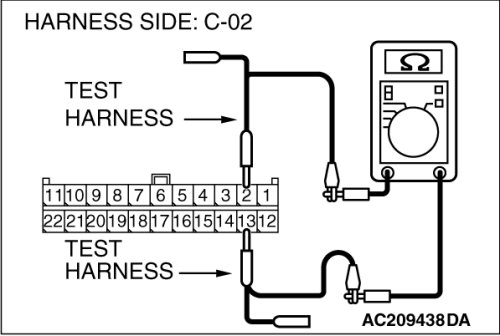 (4)Measure the resistance between joint connector (3) terminals 2 and 13.