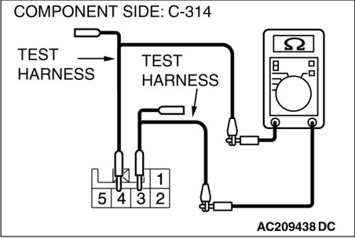 (1)Disconnect steering wheel sensor connector C-314, and measure the resistance at the component side of steering wheel sensor connector C-314.