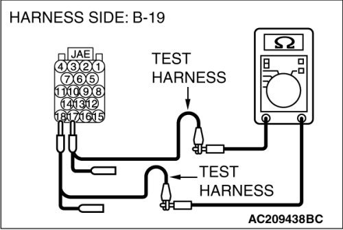 (1)Disconnect powertrain control module connector B-19, and measure the resistance at the component side of powertrain control module connector B-19.