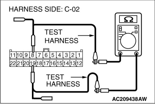 NO If the resistance measures less than 1 kohms, repair the wiring harness between joint connector (3) and multi-center display unit connector (Mitsubishi Multi Communication System).