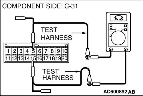 (1)Disconnect multi-center display unit connector C-31 [Mitsubishi Multi Communication System], and measure the resistance at the component side of multi-center display unit connector C-31 [Mitsubishi Multi Communication System].