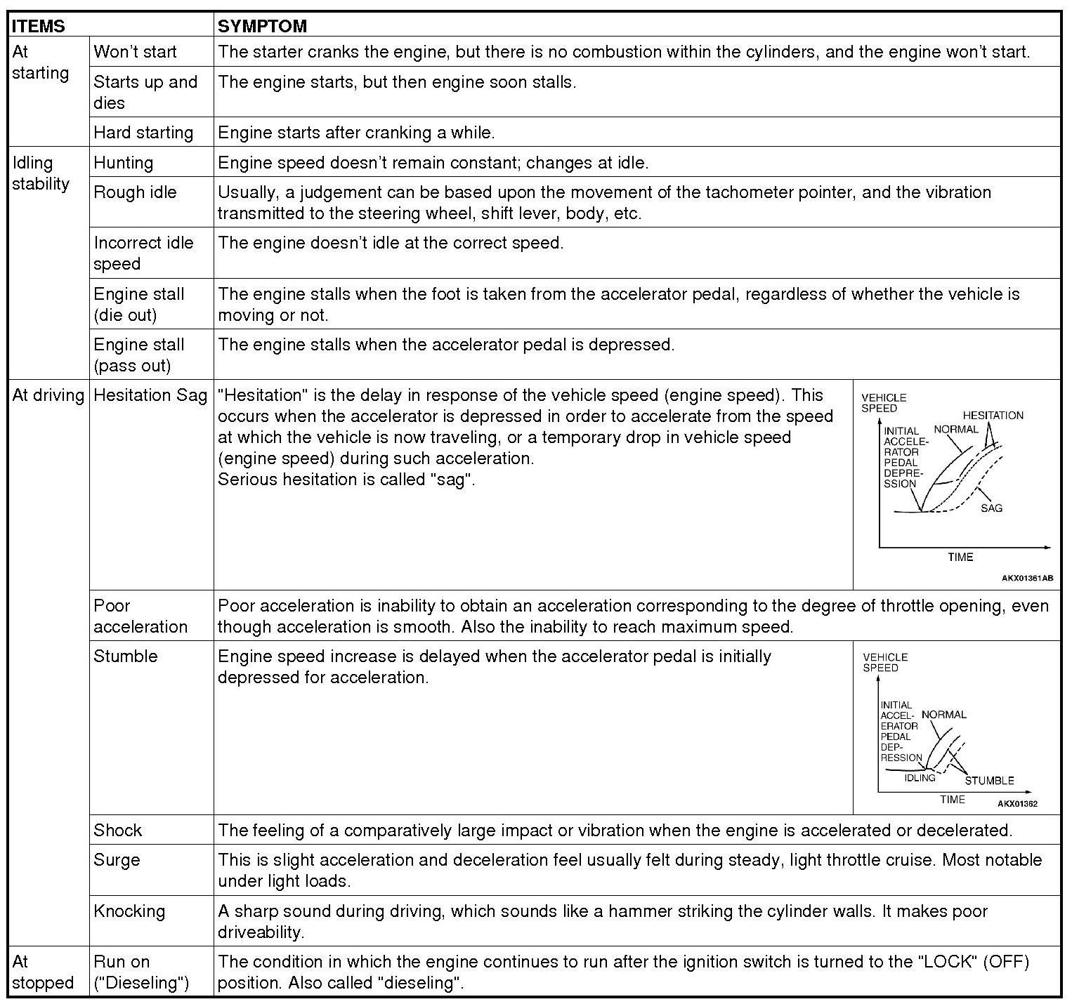 PROBLEM SYMPTOMS TABLE (FOR YOUR INFORMATION)