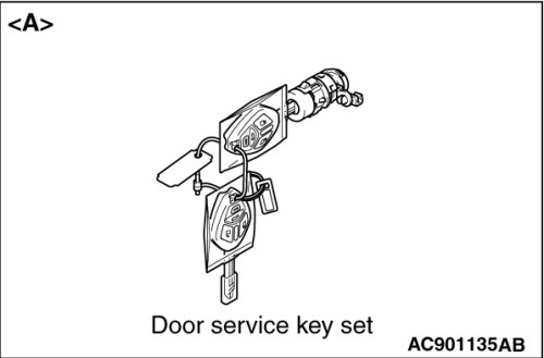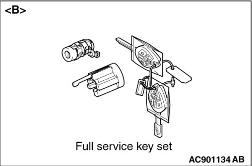 - Do not register the ignition keys other than the ignition key that starts the engine. (When replacing by the door service key set of illustration[ A] , the engine cannot start if the encrypted code is registered with the barcode on the ignition key supplied simultaneously. If the ignition key using for each lock cylinder and starting engine is used as a common ignition key, replace by the full service key set of illustration[ B].)