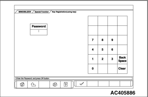 7. Enter the password of the vehicle, and press the OK button.