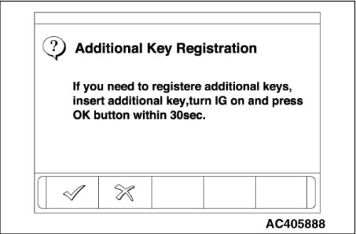 9. When the ignition key registration is finished, the additional key registration menu is displayed. To register the additional key, insert the key and turn the ignition switch to the