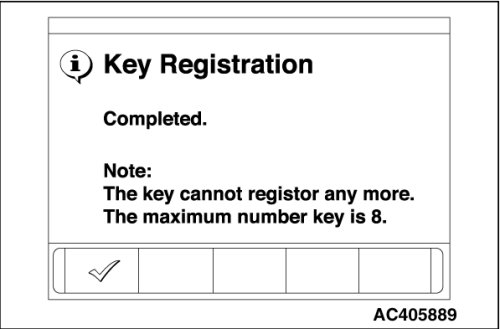 10. A maximum of eight ignition keys can be registered. When the registration of the eighth ignition key is finished, key registration completion menu is displayed. Press the OK button and finish the ignition key registration.