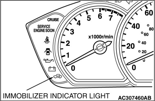 - When the immobilizer indicator light does not change in 3 seconds after carrying out step 6