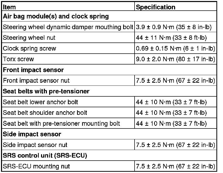 FASTENER TIGHTENING SPECIFICATIONS