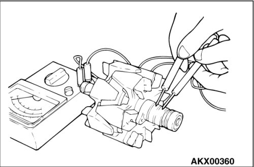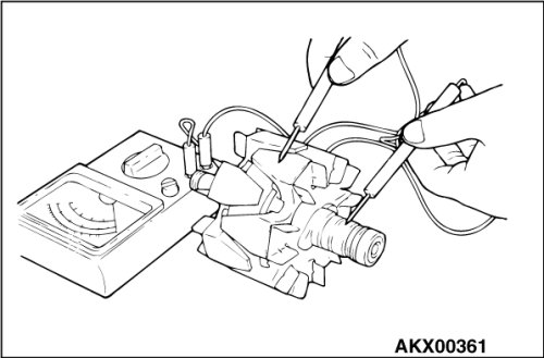 2. Check the continuity between the slip ring and the core. If there is continuity, replace the rotor.