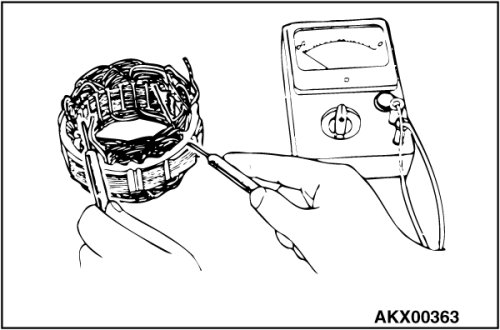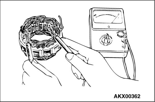 2. Check the continuity between the coil and the core. If there is continuity, replace the stator.