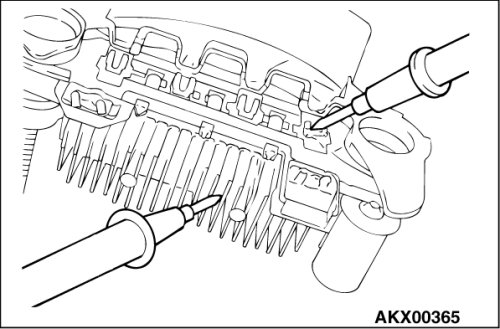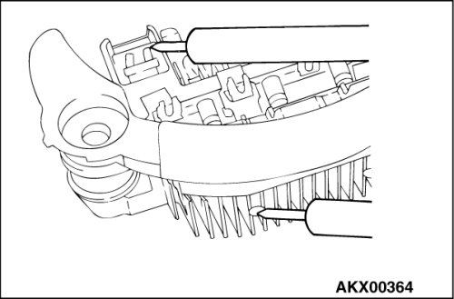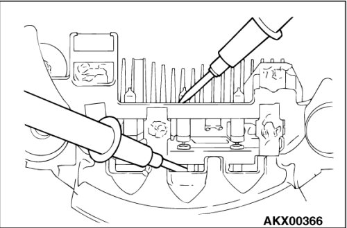 1. Check the continuity between the positive rectifier and the stator coil lead connection terminal with a tester. If there is continuity between the terminals, the diode is shorted, so replace the rectifier.