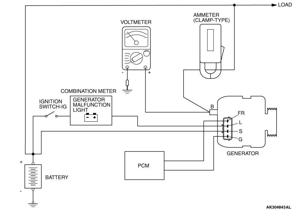 If the electrical load is small while testing, the specified level of current may not be output even though the generator is normal. In such cases, increase the electrical load by leaving the headlights turned on for some time to discharge the battery or by using the lighting system in another vehicle, and then test again.