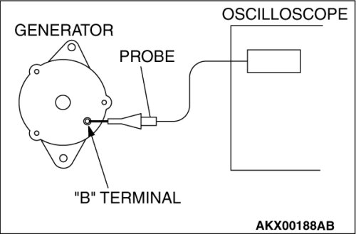 If the ripple height is abnormally high (approximately 2 V or more during idling), the wires between the generator "B" terminal and the battery have broken due to fuse blowing, etc. The generator is usually operating properly.