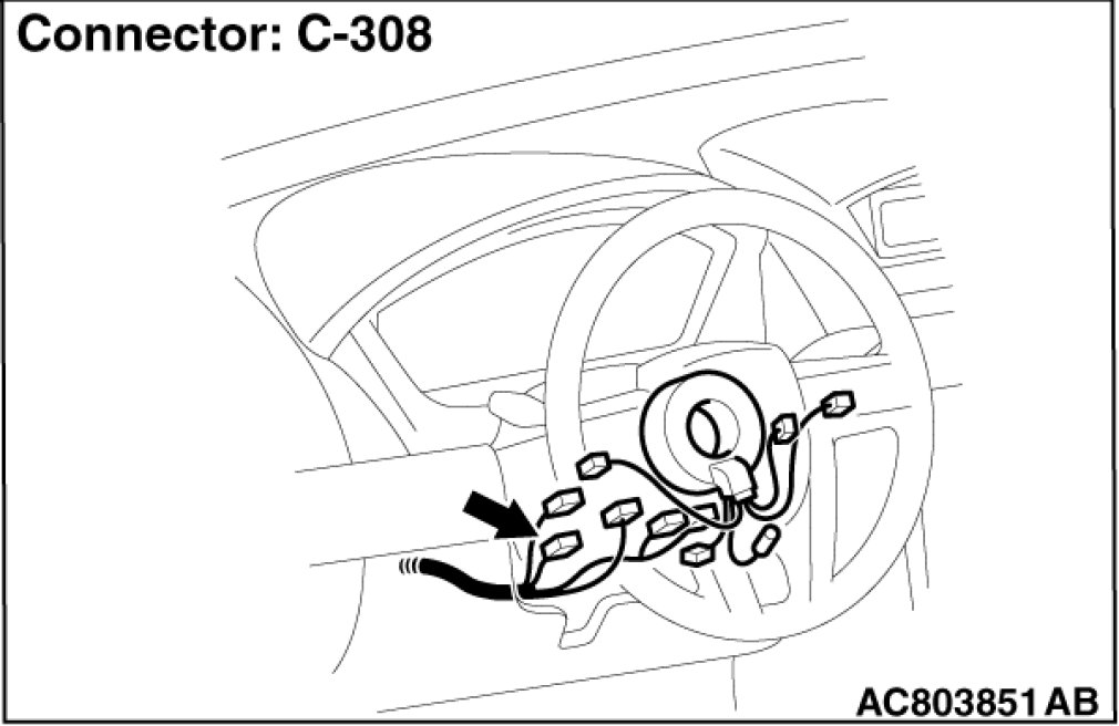 STEP 1. Check ignition switch connector C-308 for loose, corroded or damaged terminals, or terminals pushed back in the connector.