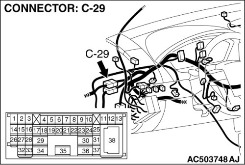 Prior to the wiring harness inspection, check intermediate connector C-29, and repair if necessary.