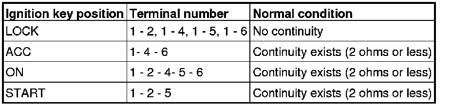 Remove the ignition switch. Then check continuity between the switch terminal.