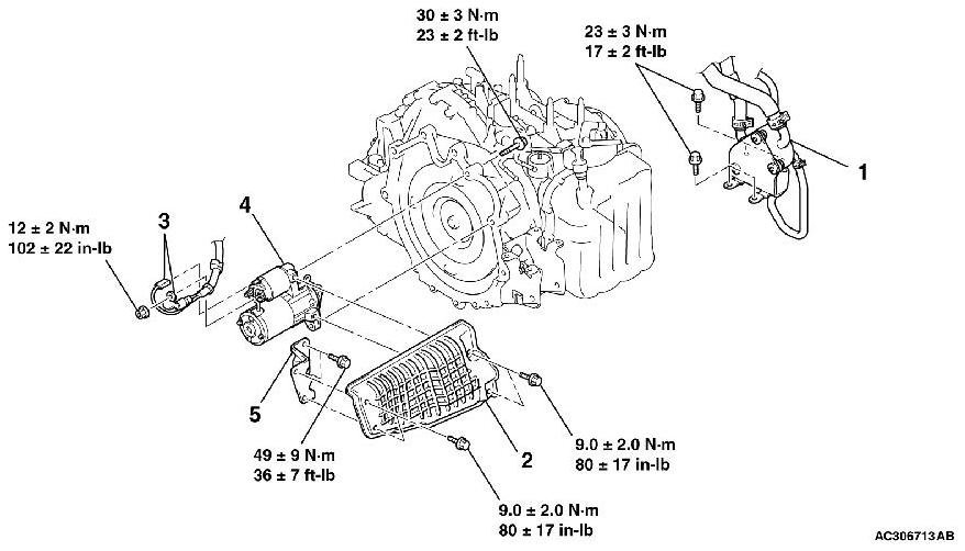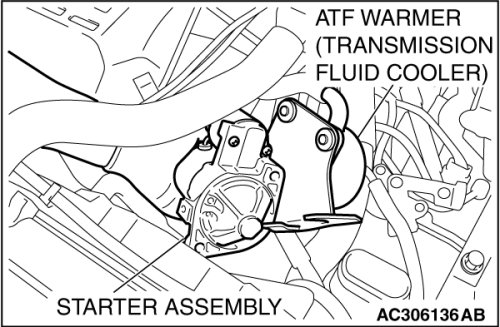 Remove the starter assembly from the side of ATF warmer (transmission fluid cooler).