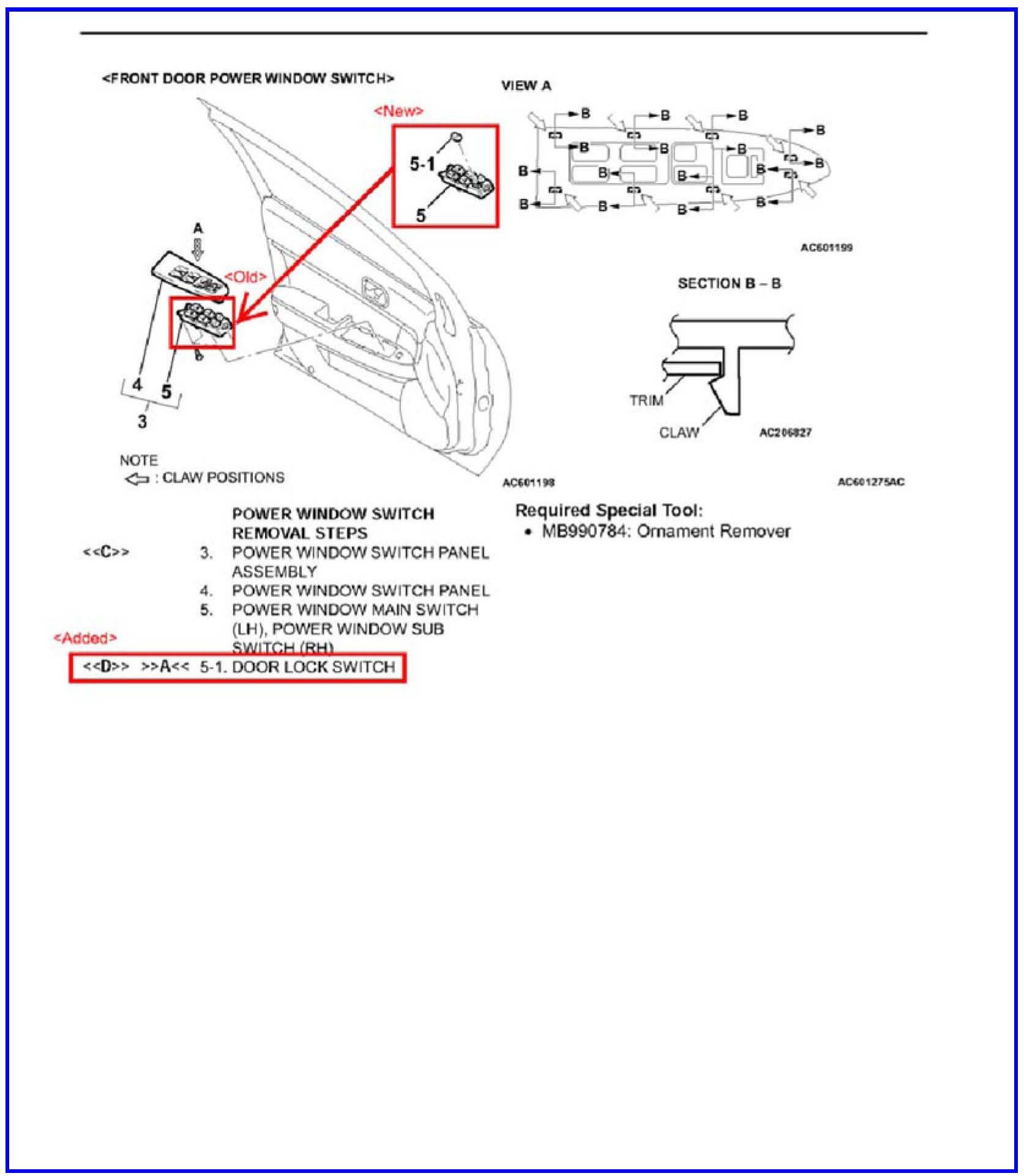 DOOR LOCK ROCKER SWITCH BUTTON REPLACEMENT - SERVICE MANUAL REVISION