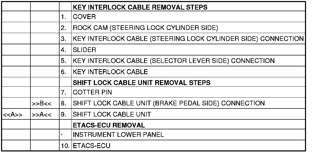 [[A]] SHIFT LOCK CABLE UNIT REMOVAL