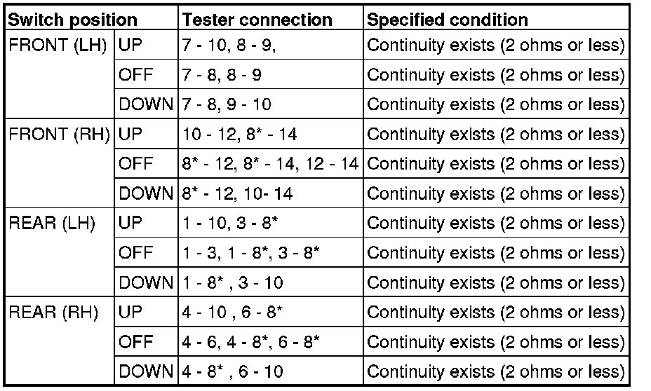 POWER WINDOW SWITCH CONTINUITY CHECK