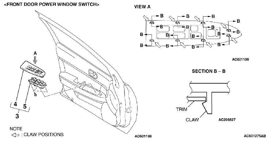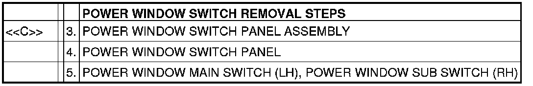 [[C]] POWER WINDOW SWITCH PANEL ASSEMBLY REMOVAL