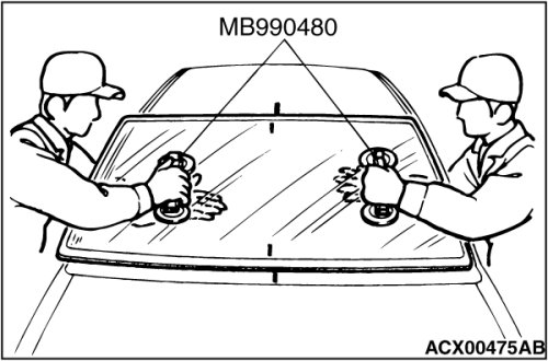 5. Use special tool MB990480 to remove the windshield.