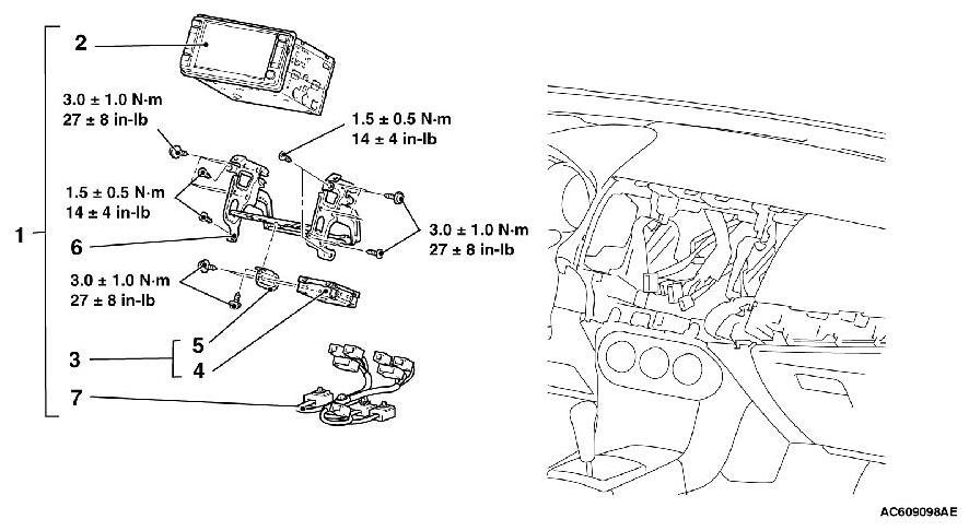 The connectors, antenna and cables connected to the multivision display are shown in the figure.