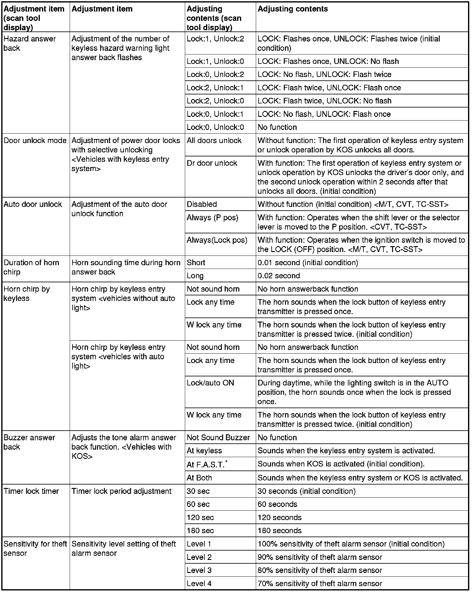 By operating the ETACS system or MMCS of scan tool MB991958, the following functions can be programmed. The programmed information is held even when the battery is disconnected.
