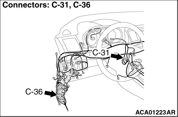 STEP 2. Check KOS-ECU connector C-31 and trunk lid open switch connector F-09 for loose, corroded or damaged terminals, or terminals pushed back in the connector.