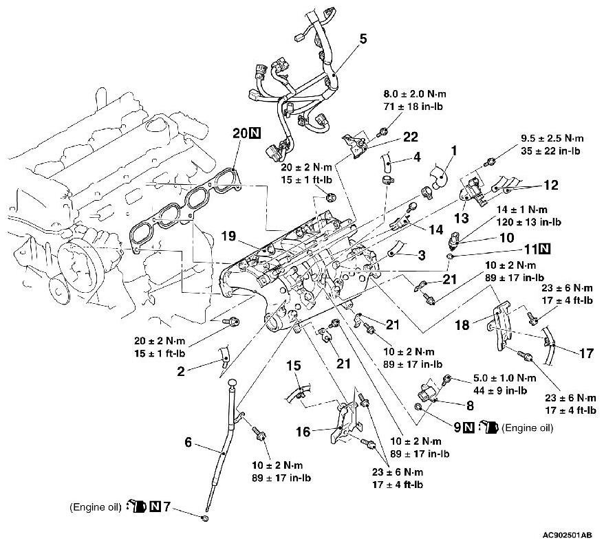 Tighten the number 2 intake air temperature sensor to the specified torque by using special tool MB992188.