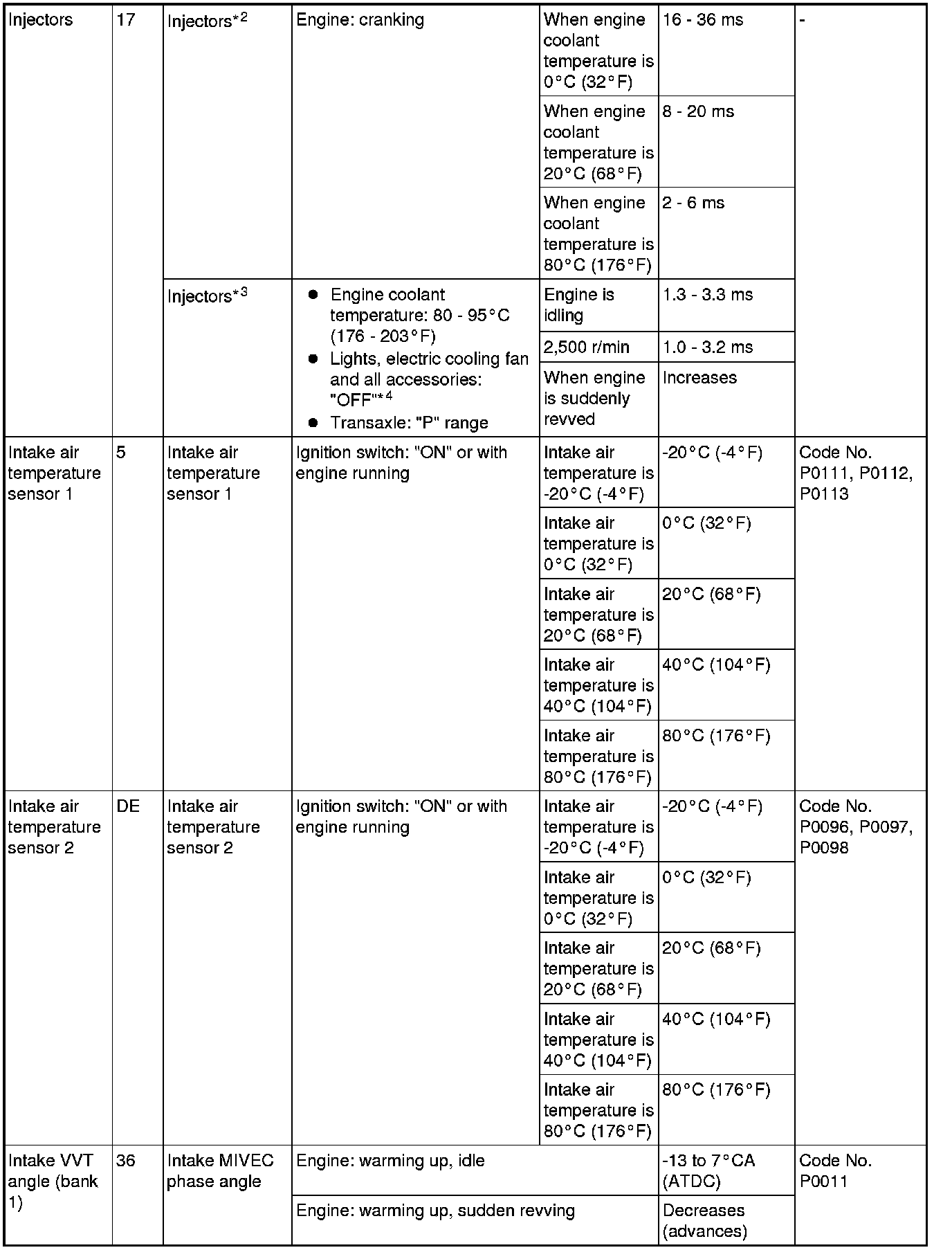 *3: In a new vehicle [driven approximately 500 km (311 mile) or less], the injector drive time is sometimes 10% longer than the standard time.