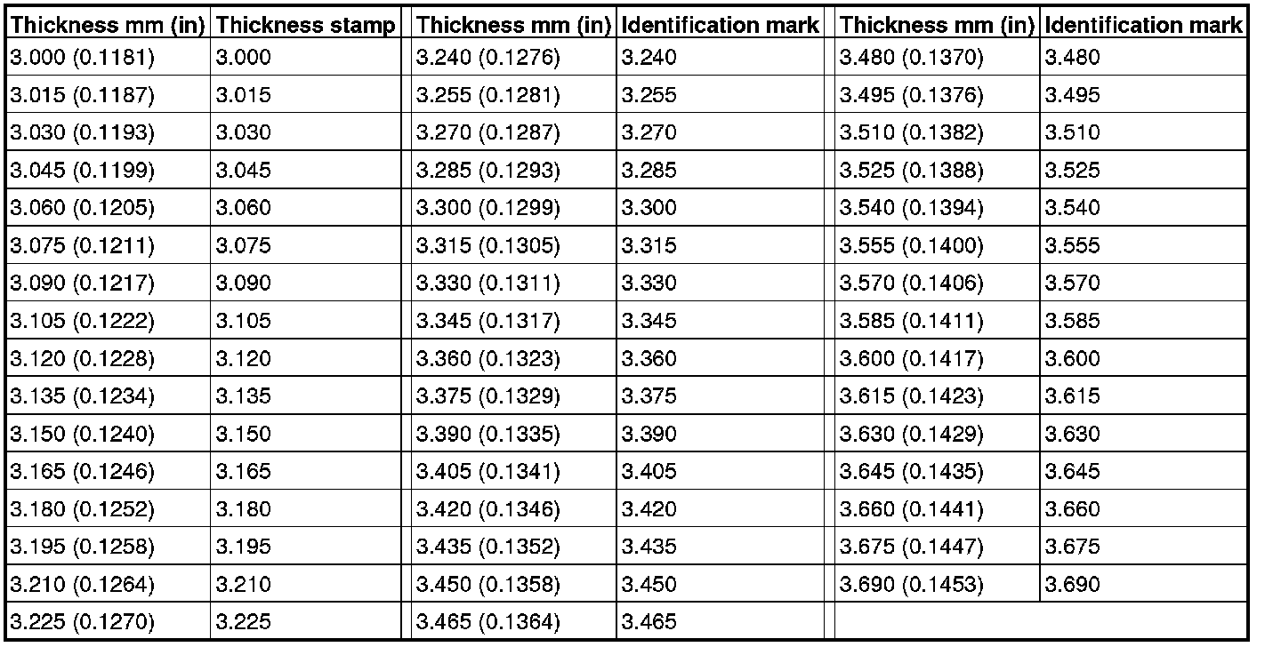 There are 47 kinds of valve tappets at intervals of 0.015 mm (0.0006 inch) in the range between 3.000 mm (0.1181 inch) and 3.690 mm (0.1453 inch).