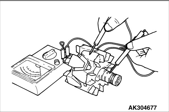 1. Measure the resistance between the two slip rings of the rotor coil to check the continuity between them.