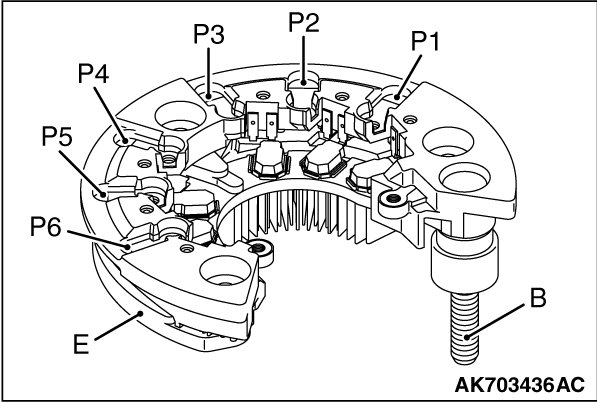 Unless the electrical continuity of each diode meets the table, replace the rectifier.