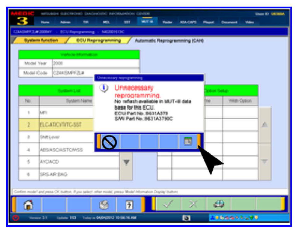 6. In the "Unnecessary Reprogramming" dialog box, click the Data Screen icon (not the check mark).