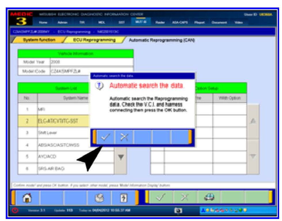 5. Click the check mark to begin an automatic search for reprogramming data.