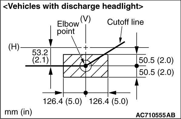 (Vertical direction) 53.2 mm (2.1 inches) (0.4 degrees) below horizontal line (H). ± 50.5 mm (± 2.0 inches) (± 0.38 degrees angle)