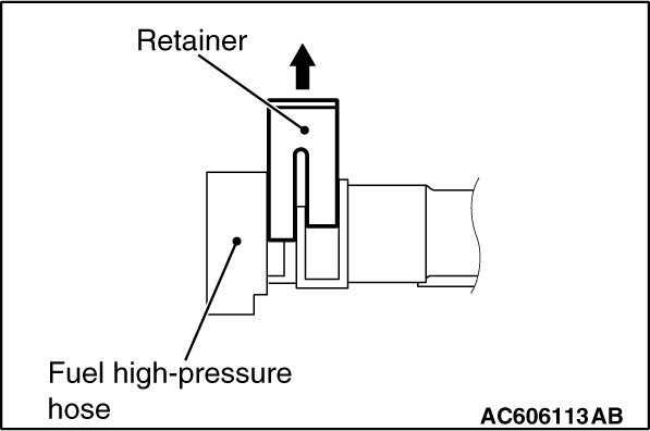 When pushing up the retainer of the fuel high-pressure hose connector, pay attention to avoid damage to the retainer.
