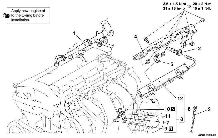 When installing the fuel rail and fuel injector assembly to the intake manifold, pay attention to avoid damage to the O-ring at the end of the fuel injector assembly.