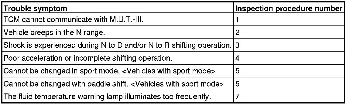 TROUBLE SYMPTOM CHART