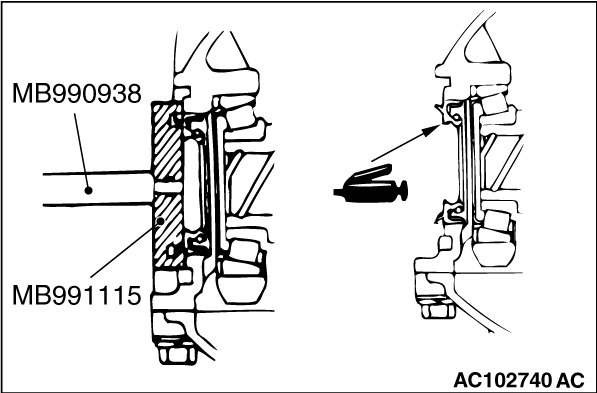 3. Use special tools MB990938 and MB991115 to press-fit a new oil seal.