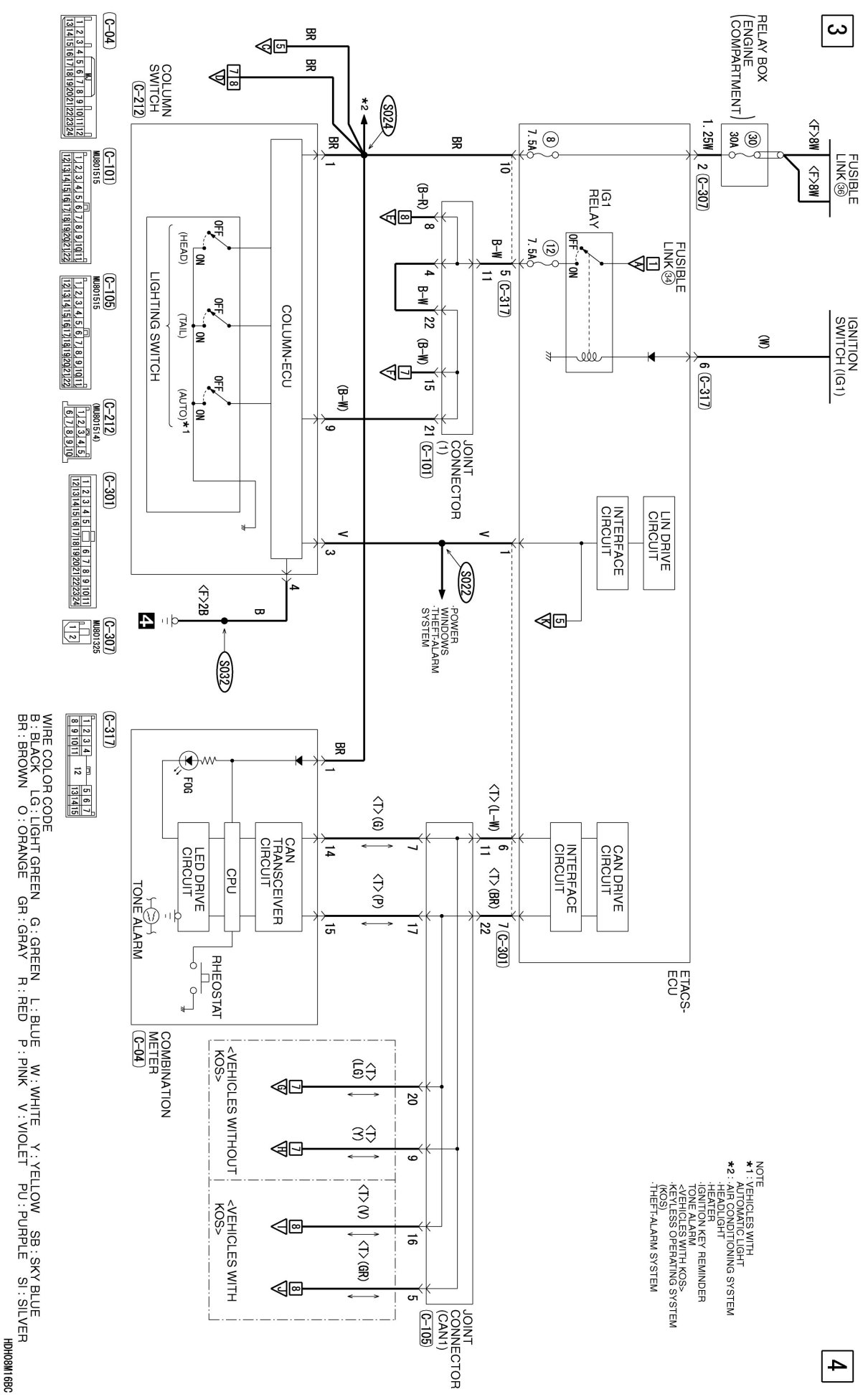 TAILLIGHT, POSITION LIGHT, LICENSE PLATE LIGHT AND LIGHTING MONITOR TONE ALARM